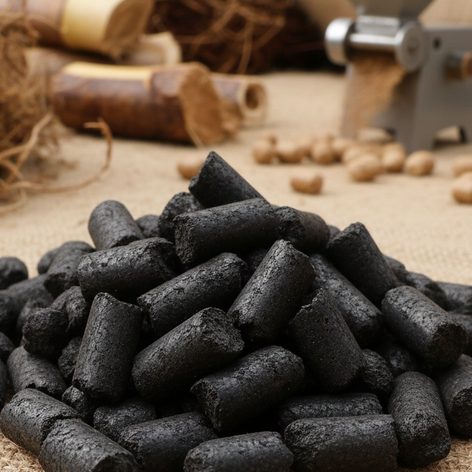 Palm Kernel Shell Charcoal Briquettes are solid charcoal products made from carbonized palm shells (turned into charcoal) and then molded or compressed into uniform briquette shapes (e.g., cubes, hexagons, or fingers). This product is highly sought after in the export market as a natural and environmentally friendly heat source.
